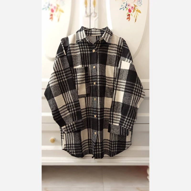 ژاکت زنانه چهارخونه پشمی پارچه خارجی