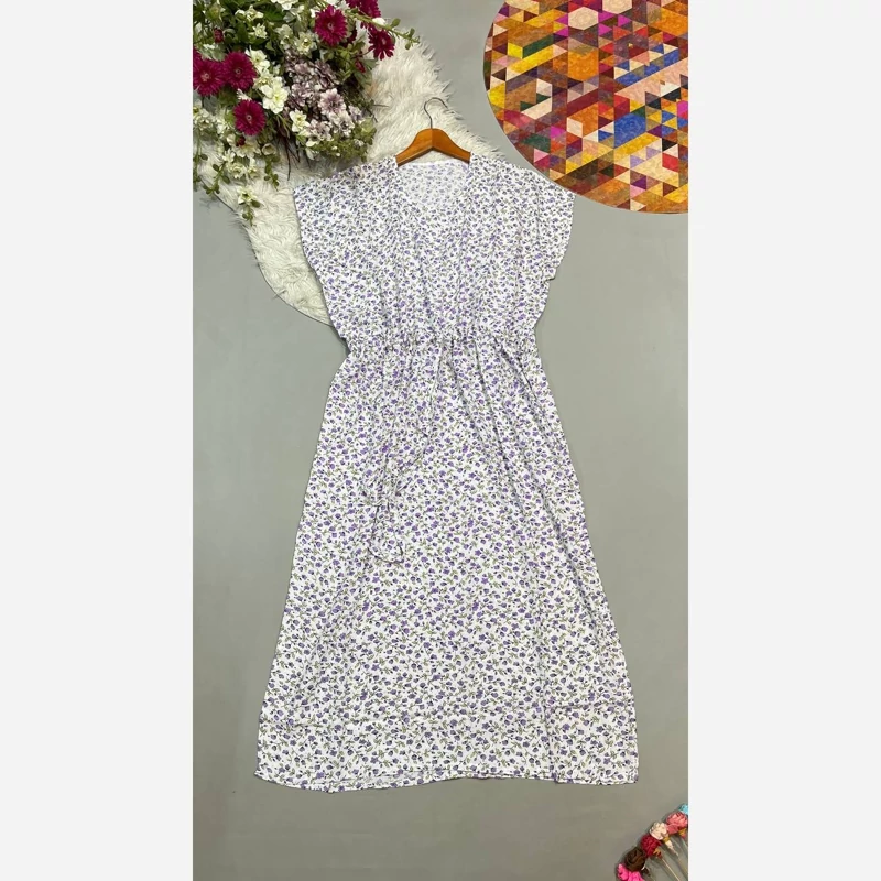 پیراهن زنانه ساحلی آستین کوتاه نخی پارچه تایلندی