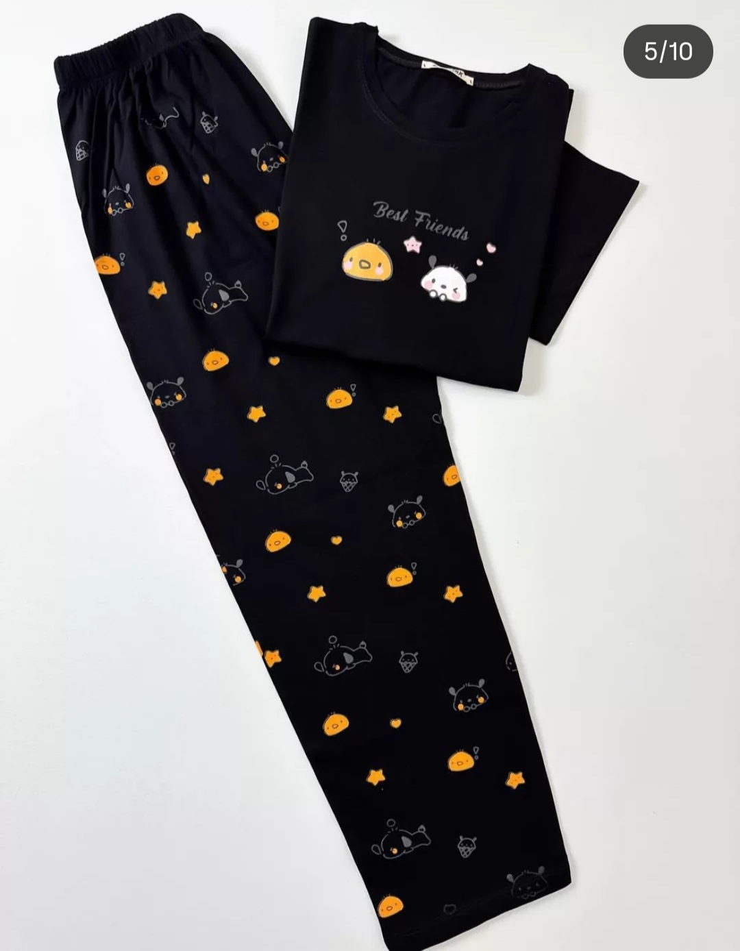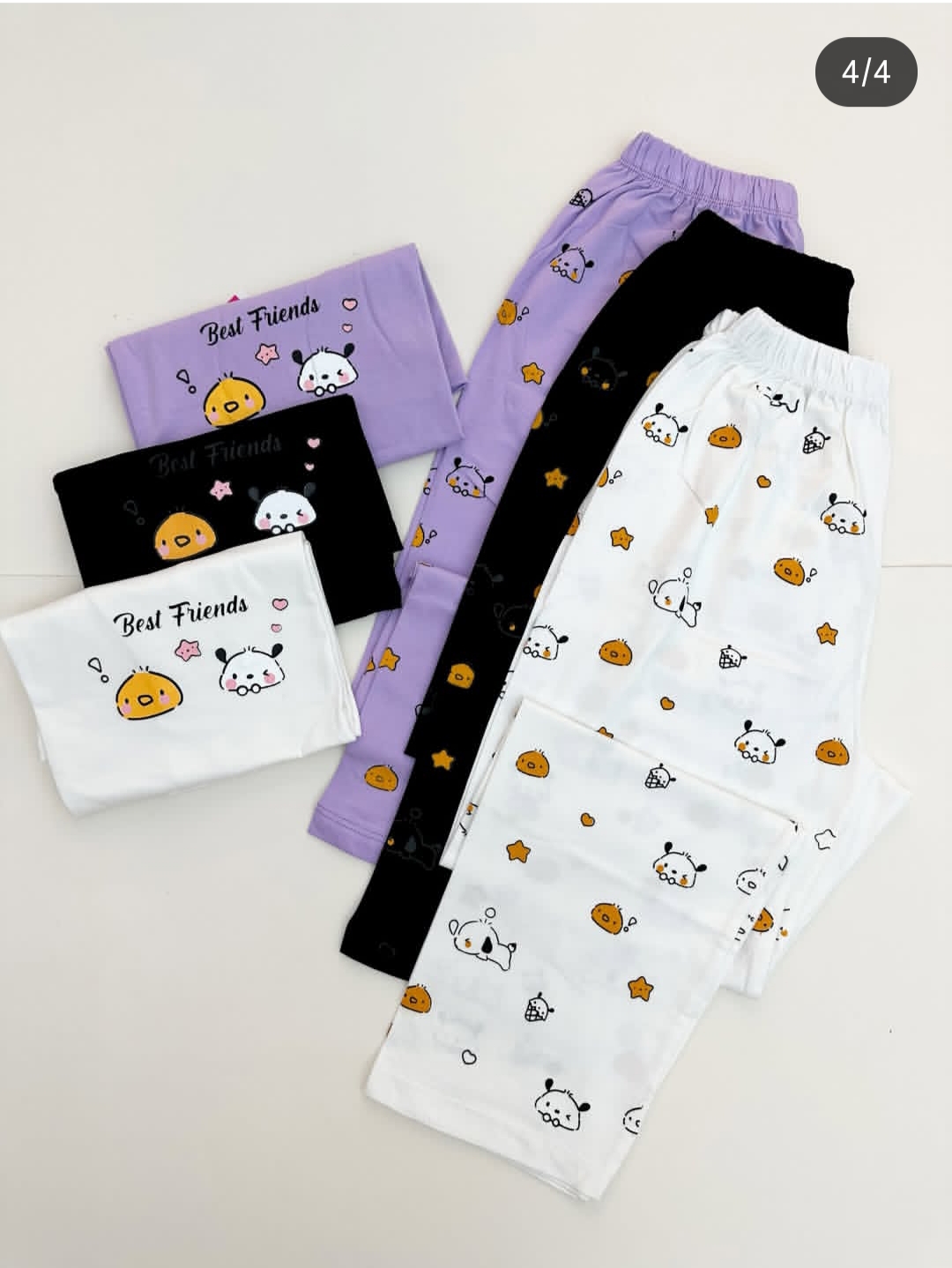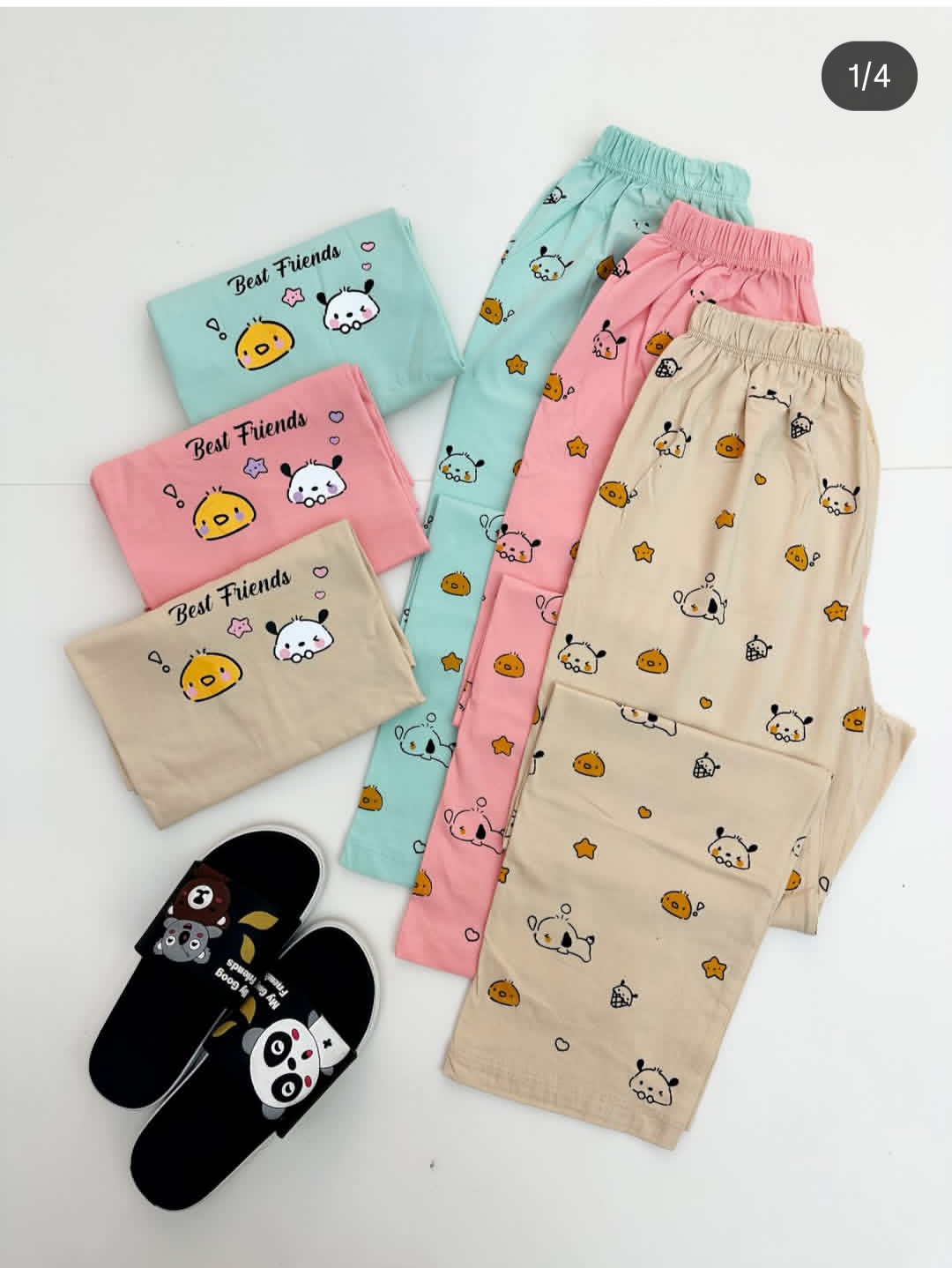 ست تیشرت شلوار راحتی طرح جوجه مناسب خانوم ها و دختران جنس عالی و درجه یک شلوار مرغکدار چاپ طرح جوجه ارسال فوری در تهران