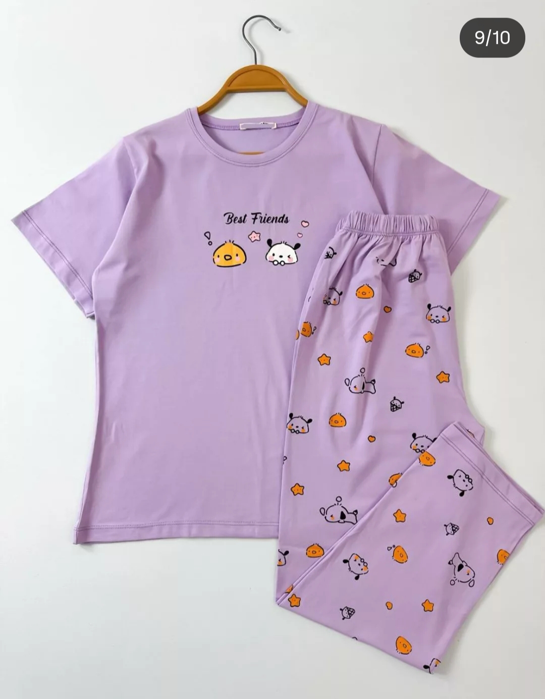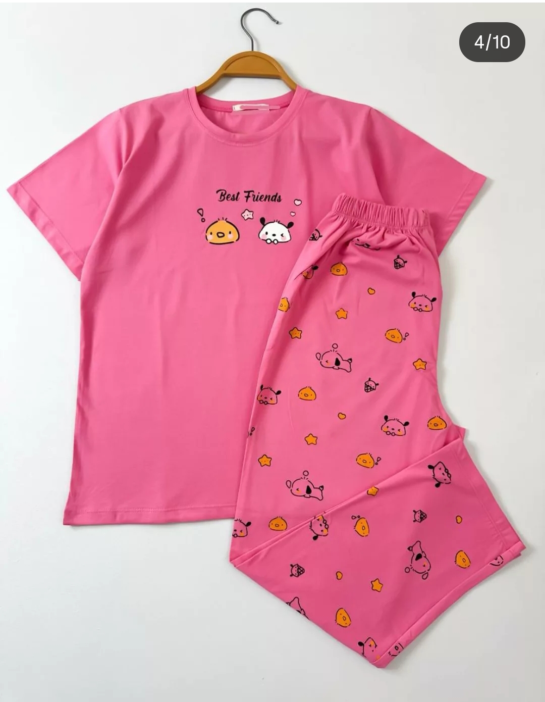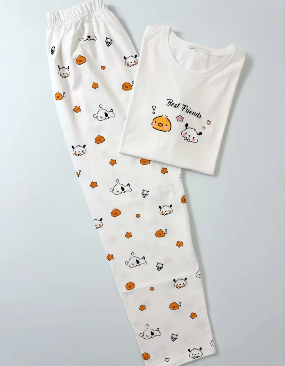 ست تیشرت شلوار راحتی طرح جوجه مناسب خانوم ها و دختران جنس عالی و درجه یک شلوار مرغکدار چاپ طرح جوجه ارسال فوری در تهران